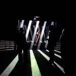 The visuals app was written in openFrameworks, based on a projection mapping system Marek Bereza (programmer) used in his previous projects. The graphics were all based on a triangulation which had a stripe texture mapped to them. All the different scenes in the videos are variations on that – it’s all the same program, but with the parameters in different positions – How big should the stripes be? How random should their orientation be? How strong should the tint colour be? etc etc.