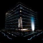Part of this campaign Flat-e is a music video promo for Jamie’s new single entitled ‘You Naked’. The promo is the first from Jamie’s soon to be released album, conceived of by London Creative Studio, Flat-e who directed and edited the video with no post-production effects using realtime projection. The promo, as you can see in the video below, features Jamie performing in a large cube structure in the middle of a darkened room. He wears a reflective mac that appears to strobe under the lights. Flat-e developed a realtime projection app that allowed the room to shift and blend into multiple environments on the day of the shoo. Jamie affects the orientation and depth of the environment with a motion reactive microphone stand.