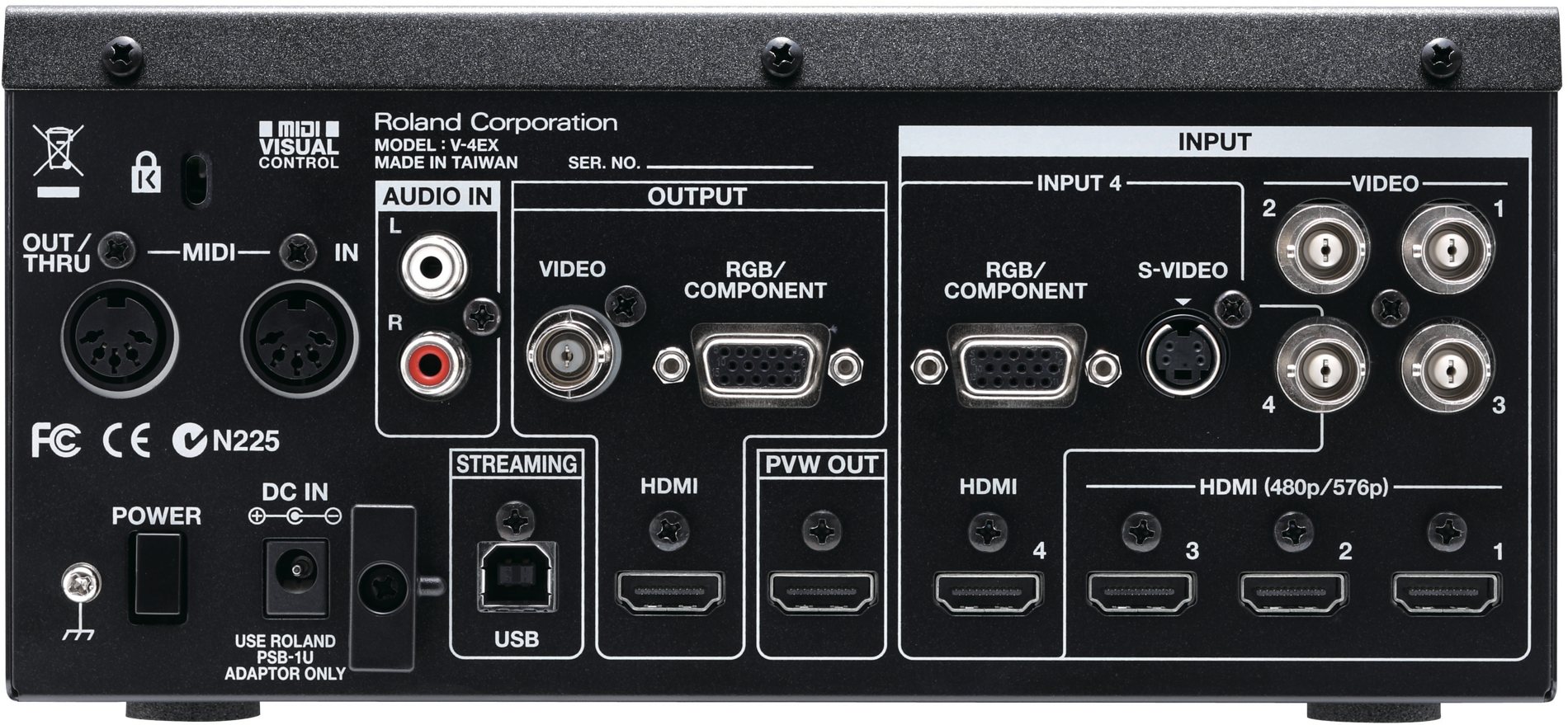 Roland Systems Group, ha anunciado la próxima generación en la gama de producto de los mezcladores de video para eventos en directo; V-4 y V-8. La Roland V-4EX actualiza los estándares de la Roland V-4 (mezclador de 4 canales) incorporando entradas y salidas en HDMI, USB streaming, soporte HDCP, multiviewer incorporado en una pantalla táctil y audio embedding para las salidas HDMI