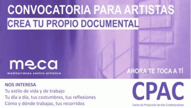 Con CPAC, Centro de Producción de Arte Contemporáneo MECA Mediterráneo Centro Artístico va a elaborar un fondo documental audiovisual de los artistas y creativos nacionales e internacionales que actualmente están desarrollando obras que aportan un gran valor histórico en el contexto en el que nos movemos y en el que quede reflejado los conceptos referentes al artista y/o creativo: Estilo de vida y de trabajo. El día a día del artista. Costumbres. Reflexiones. Cómo y dónde trabaja. Recorridos