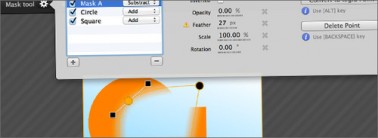 Las propiedades de cada máscara son las esperadas; invertir, opacidad, suavizado de borde, escala y rotación. Podemos ordenar, añadir o eliminar puntos y convertir cada uno de ellos en lineas «Bezier» con lo que generamos máscaras muy sofisticadas.