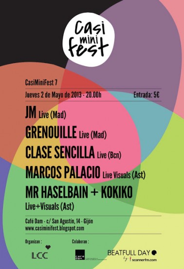 La 7ª edición del CasiMiniFest tendrá lugar el Jueves 2 de Mayo en Gijón, en el Café Dam, a partir de las 20:00 horas, con un precio de entrada de 5€ que irá destinada íntegramente a los artistas.