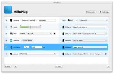 De nuevo nustro amigo Philippe Chaurand de Millumin vuelve a sorprendernos con una actualización en formato plugin.Se trata de MilluPlug, con el cual puede transmitir datos fácilmente con otras aplicaciones o dispositivos. Es compatible con muchos estándares, como MIDI, OSC, DMX, Artnet, Arduino, …