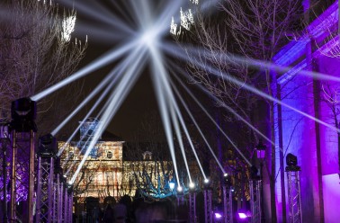 A través del control algorítmico de 16 luces robotizadas se genera una arquitectura dinámica de luz que evoluciona de forma totalmente sincrónica.