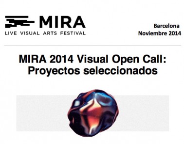 La convocatoria ha recibido decenas de proyectos: Instalaciones, AV Shows, sets de VJ y presentaciones de proyectos, todas rebosantes de talento, imaginación, creatividad y originalidad, y que usan técnicas clásicas o novedosas, además de mezclar diferentes campos de creación audiovisual. Lo que es, en definitiva, el espíritu del MIRA llevado a una convocatoria abierta de propuestas. Mira los vídeos de los proyectos seleccionados.