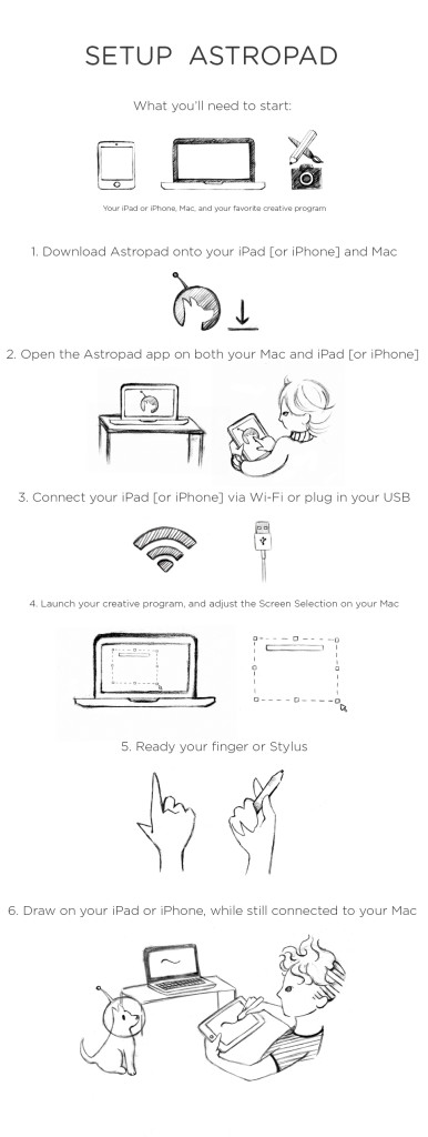 Now this is most simple way to control any software from ipad or iphone. Using Astropad app for ipad and mac you can control all your desktop space from ipad. You can also scale any part of screen, so it is useful for VJs. As you can see there are some artefacts and glitches in app, but it does not affect to performance. App work responsive, I tested it on ipad air and macbook retina 2013.