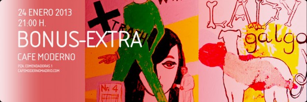 JUEVES – 24 de enero – BONUS-EXTRA Texto de café moderno: BONUS-EXTRA, ya estuvo con nosotros en Café Moderno deleitándonos con sus imágenes a través del microscopio. Bonus-Extra tiene mucho más que contarnos y los vamos a ver este jueves para delicia de todos sus fans que son muchos. Arte de guerrilla, fresco y multidisciplinar. […]